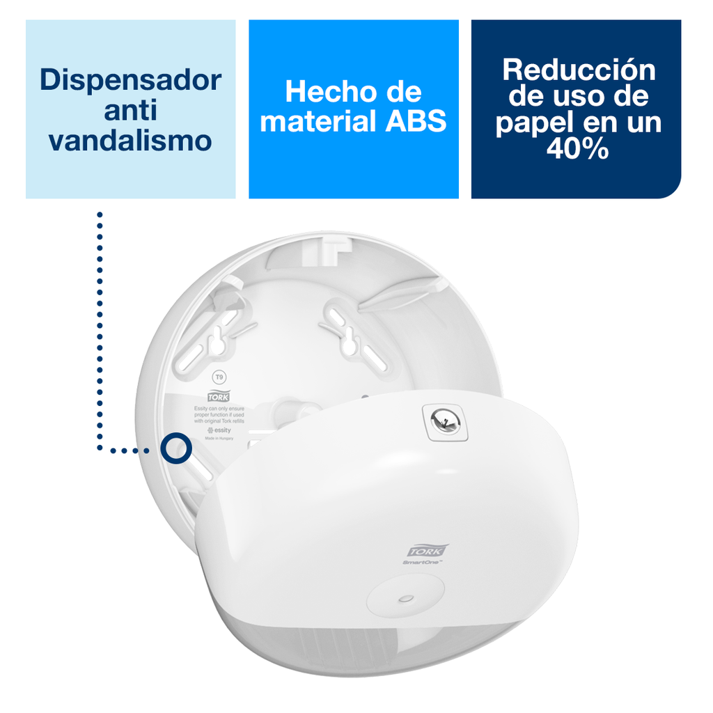 • Ahorra tiempo al personal de limpieza ya que el dispensador SmartOne® reduce el desperdicio y abastece a más usuarios entre recambios.
