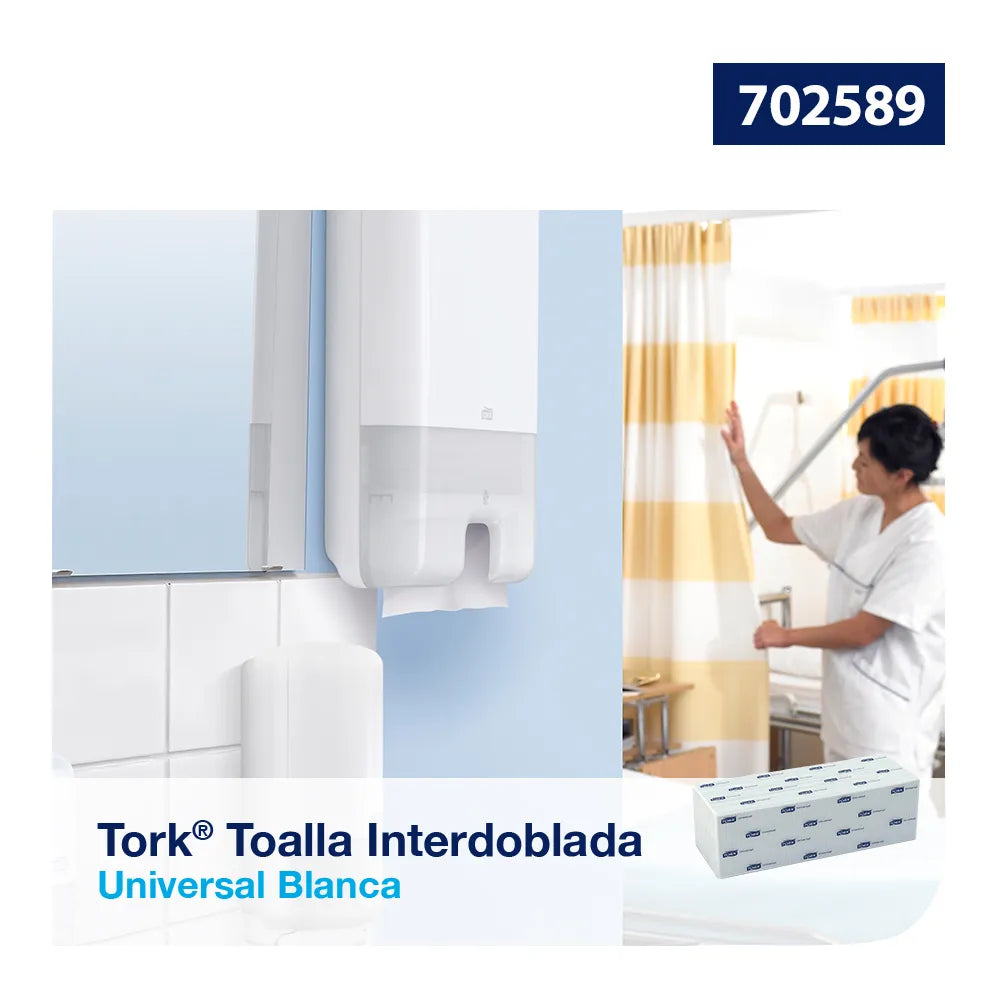 Las Toallas Interdobladas Tork estándar universal de hoja doble ofrecen una solución para las necesidades básicas del secado de manos en baños de bajo a mediano tráfico. Compatible con cualquier dispensador estándar del mercado.